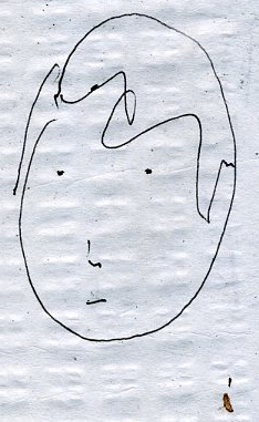 "é fácil, vais ver. começas por fazer uma oval,e a partir daí vais construindo a cara,com a expressão que quiseres."